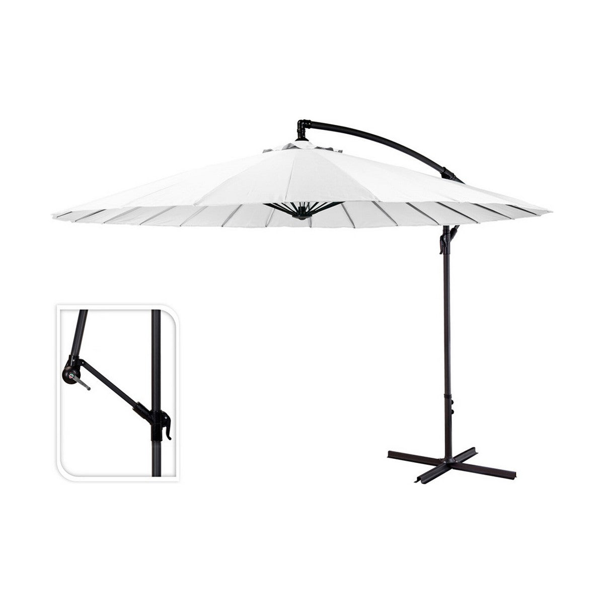 The Ambiance parasol is an offset umbrella designed to provide wide and versatile shade, ideal for terraces, gardens, or outdoor spaces requiring efficient and comfortable sun protection. Its structure features a body made of aluminium, a material that offers both strength and lightness, as well as excellent durability against weather conditions. The umbrella canopy is made of polyester, a fabric that ensures robustness, easy maintenance, and effective UV protection, presented in an elegant white colour that blends aesthetically into various settings. This umbrella has an approximate diameter of 300 cm, providing a large shaded area for maximum outdoor comfort, and a maximum height of 3 metres, ensuring ample coverage without sacrificing mobility underneath. It also features a crank opening system that makes handling and adjustment easy, allowing the umbrella to be opened and closed quickly and simply. Its offset design allows better space use by positioning the structure to the side, avoiding obstacles under the shaded area. Weighing 12 kg, this umbrella is sturdy enough for good stability, although the base is sold separately to choose the support best suited to the environment and use. The combination of materials and dimensions makes the Ambiance umbrella a practical and functional solution for those seeking comfort and sun protection outdoors, maintaining a good balance of quality, design, and durability. In short, it is a versatile and long-lasting option to expand shaded areas with ease and style.
